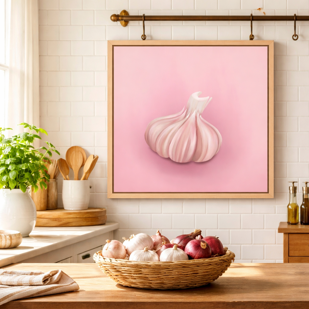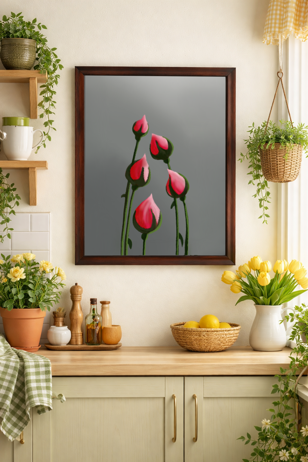 Morel Framed poster - Hand-Painted Morel Mushroom Poster – Pink & Blue Framed Art - Fungi Home Decor