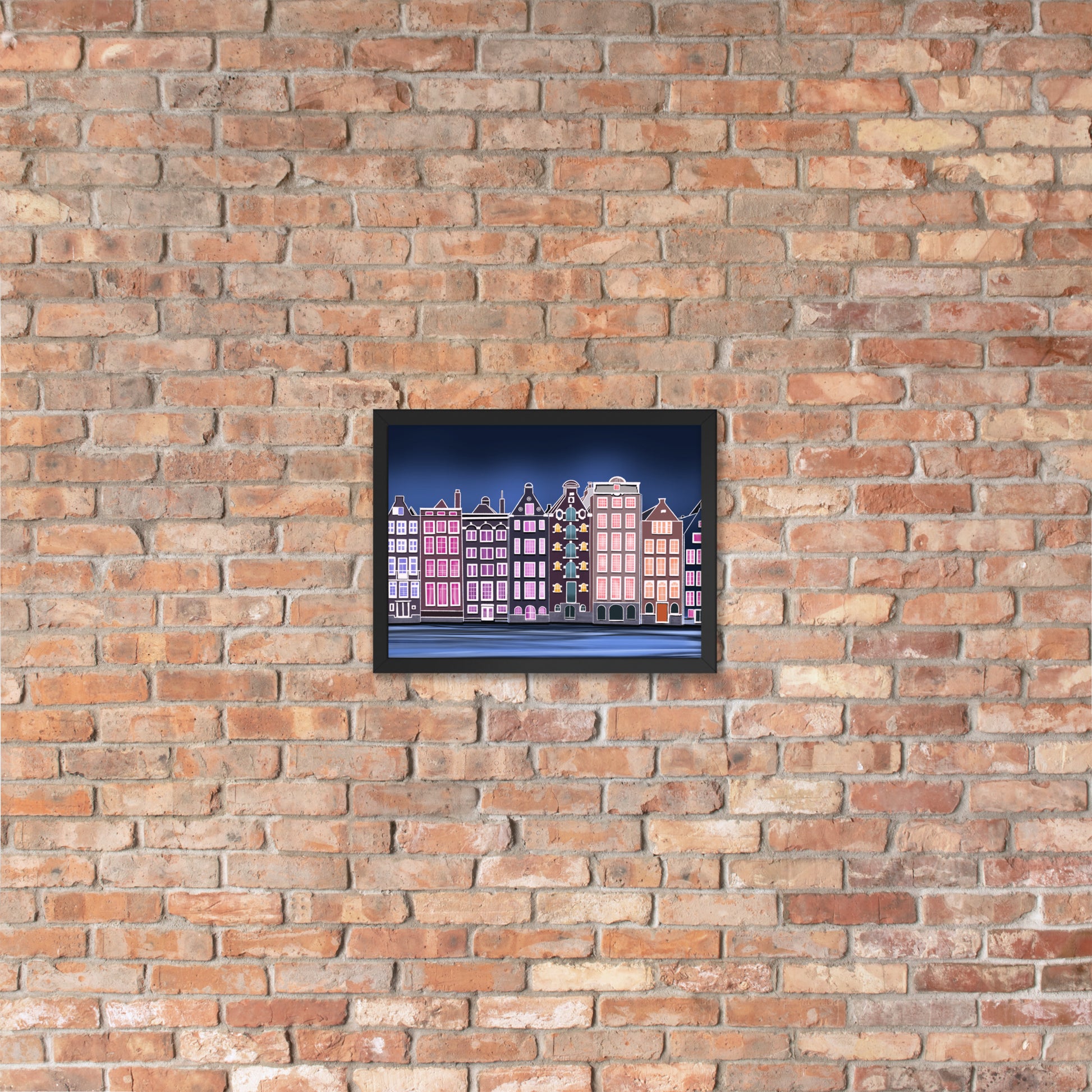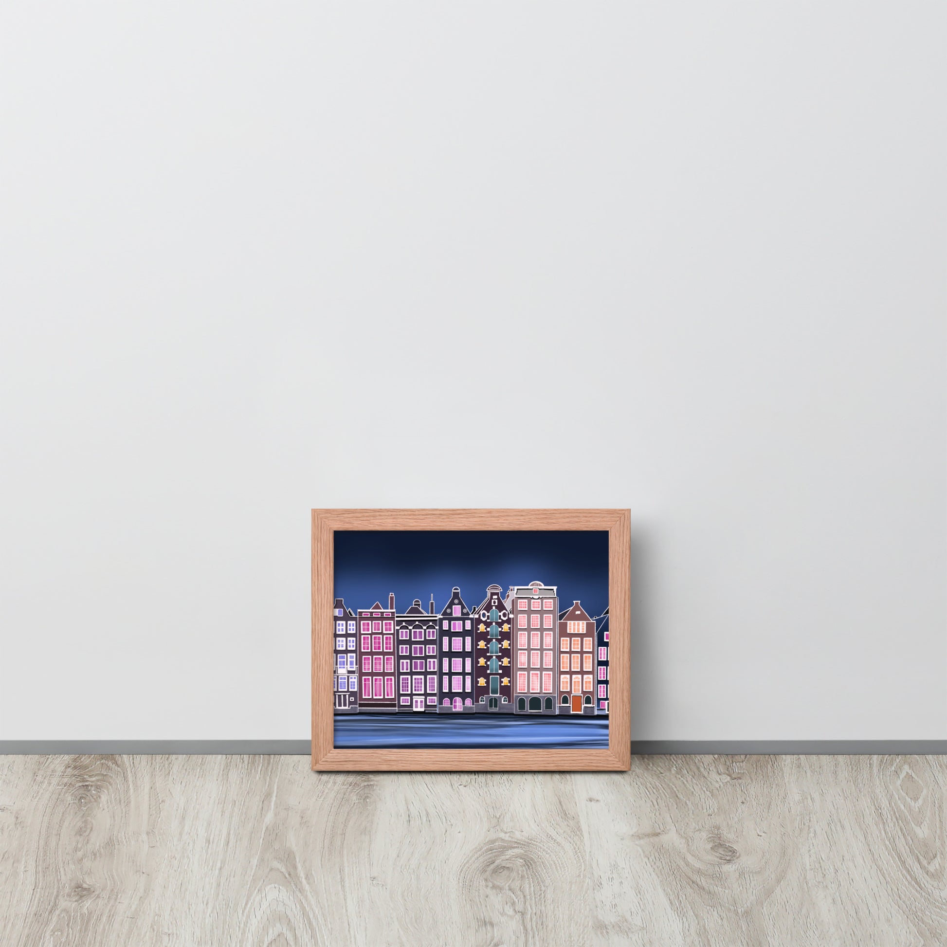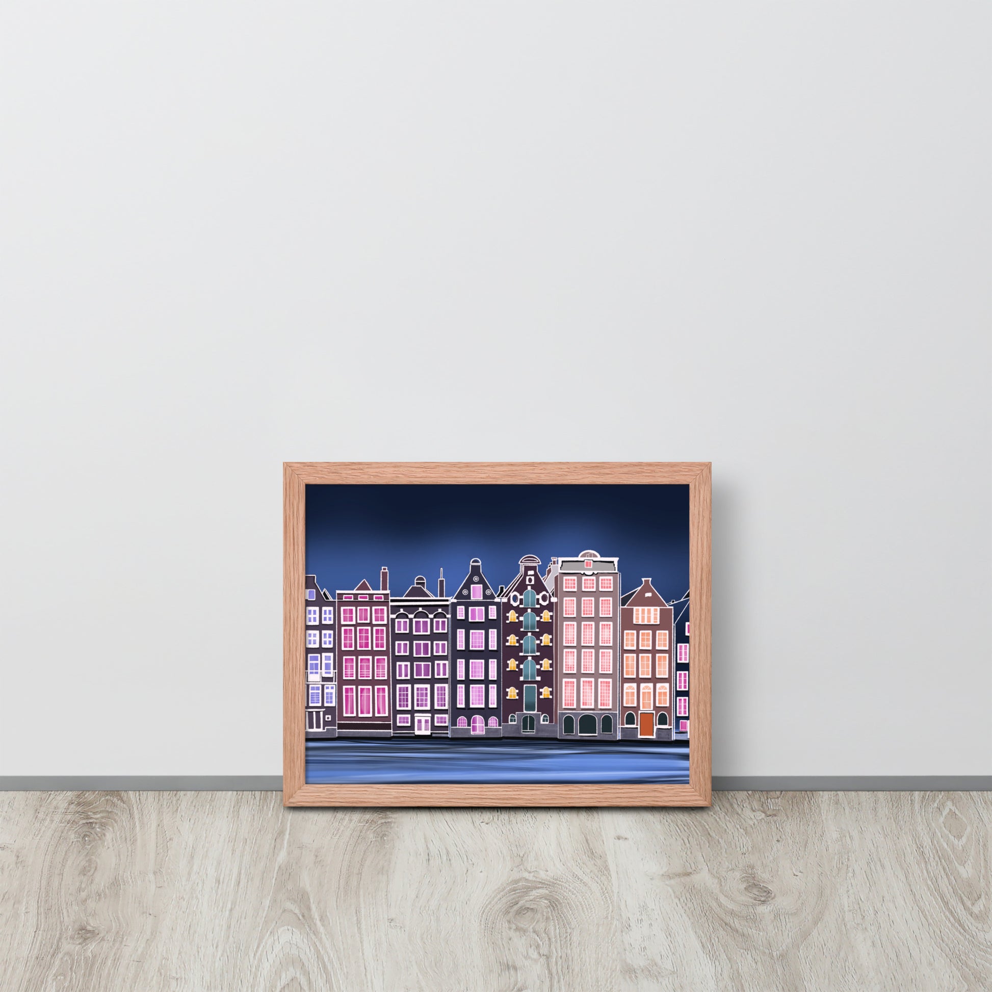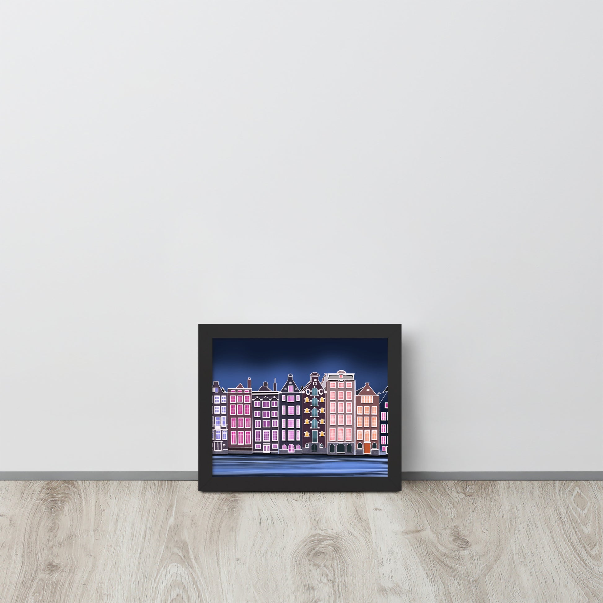 Amsterdam Night Scene - Vibrant Hand-Painted European Architecture Framed Poster