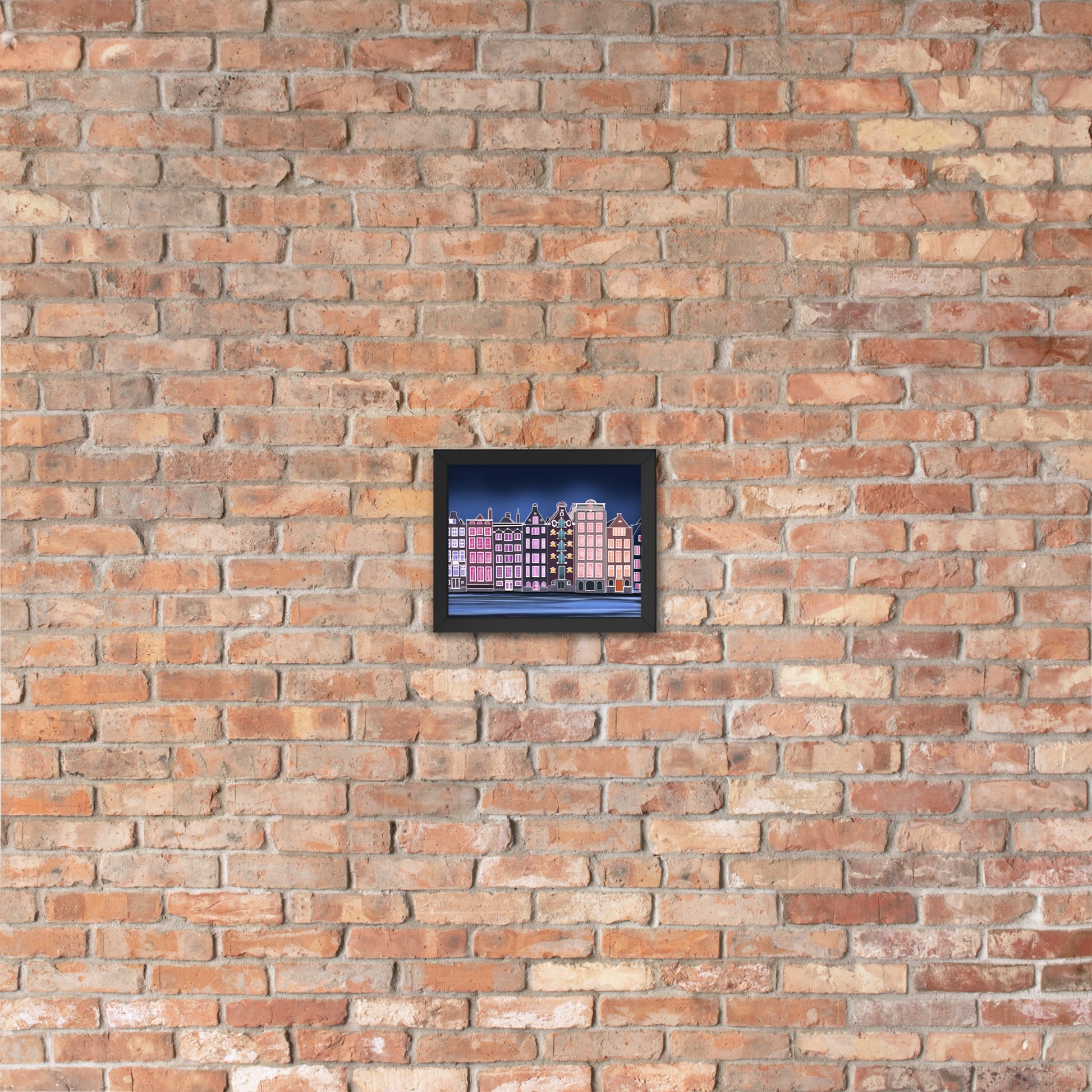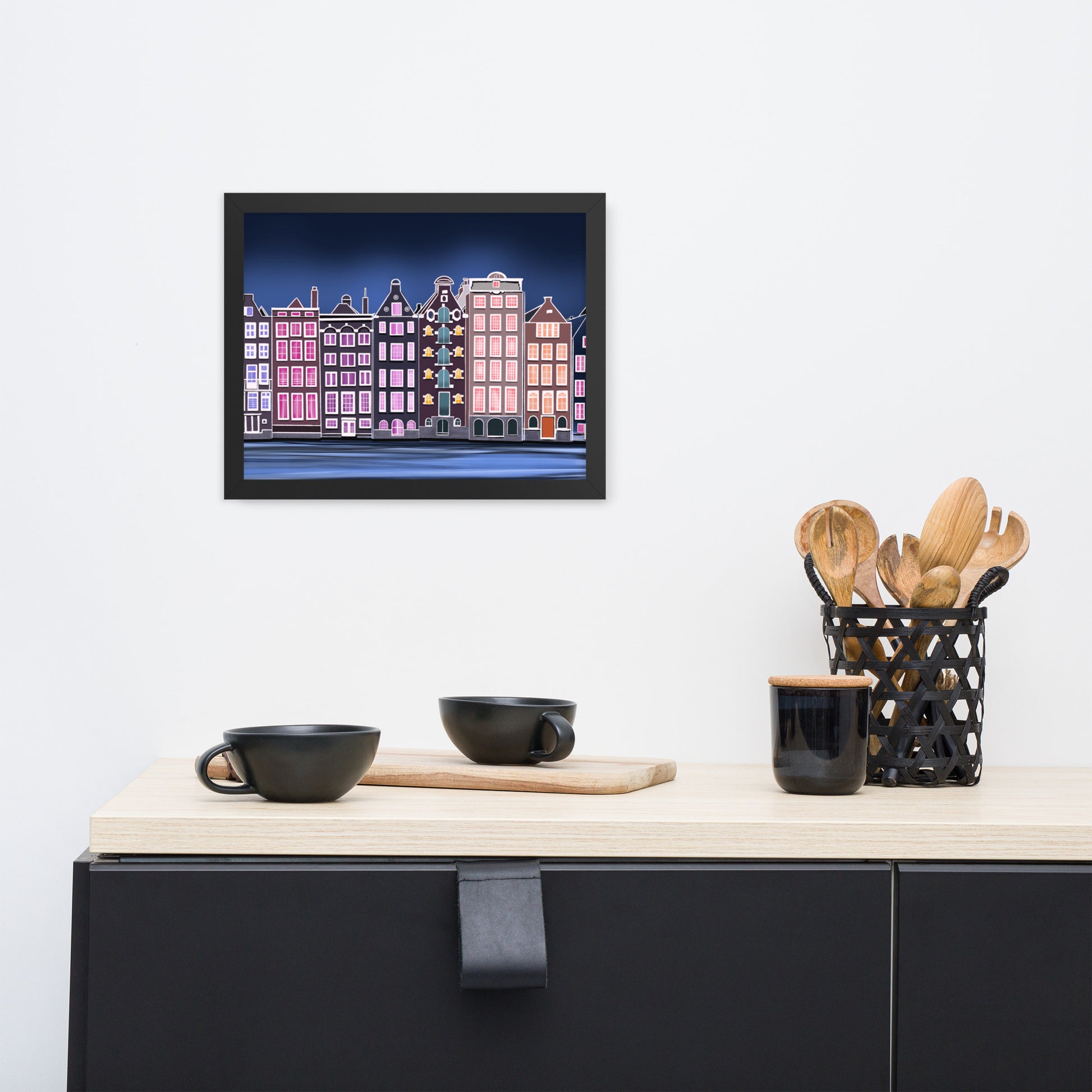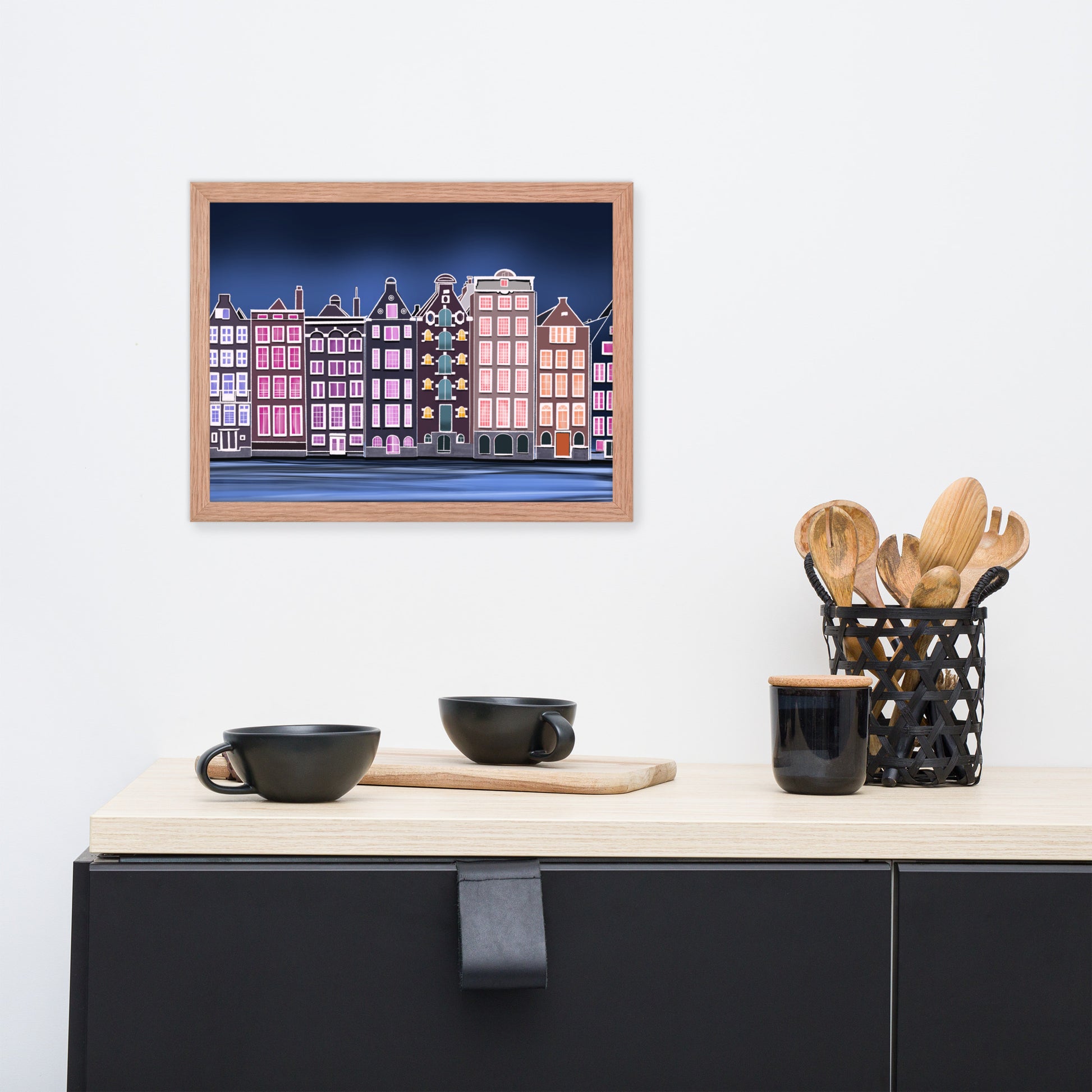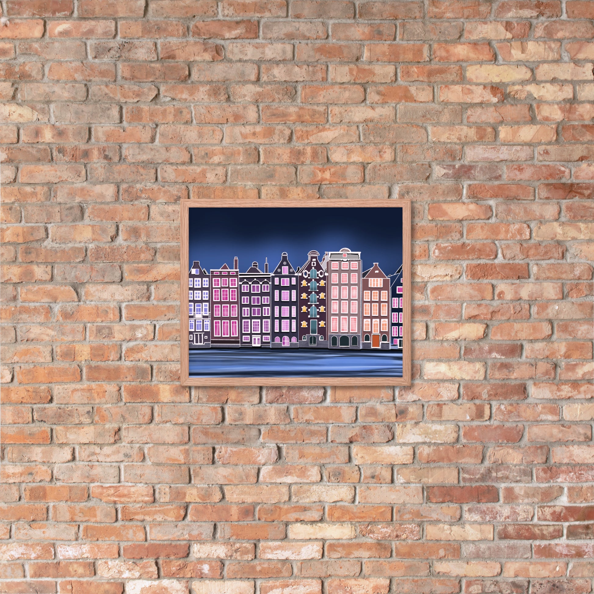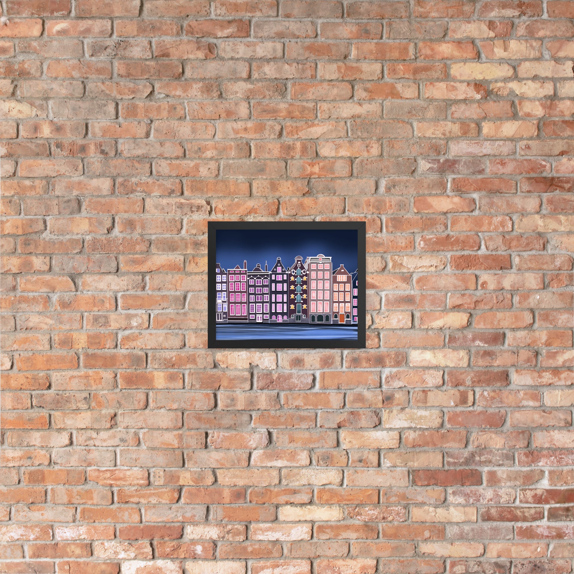 Amsterdam Night Scene - Vibrant Hand-Painted European Architecture Framed Poster