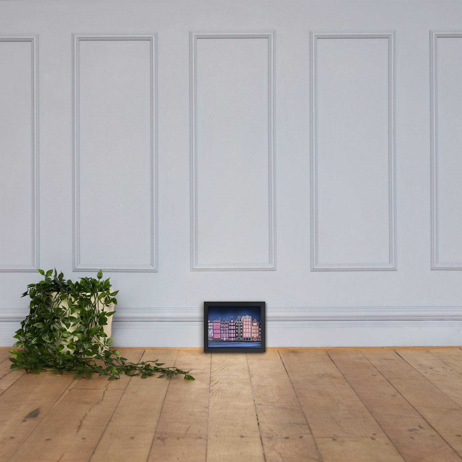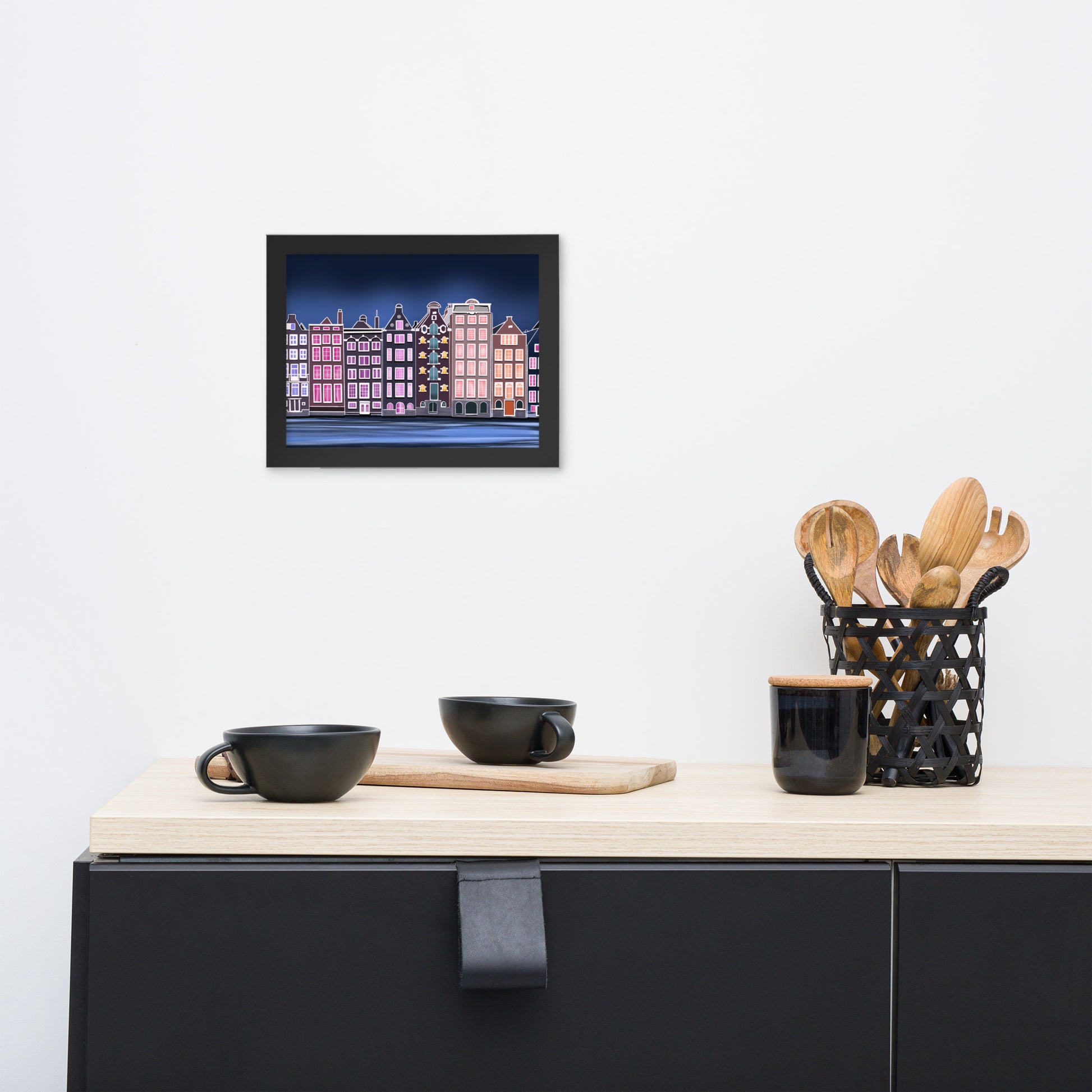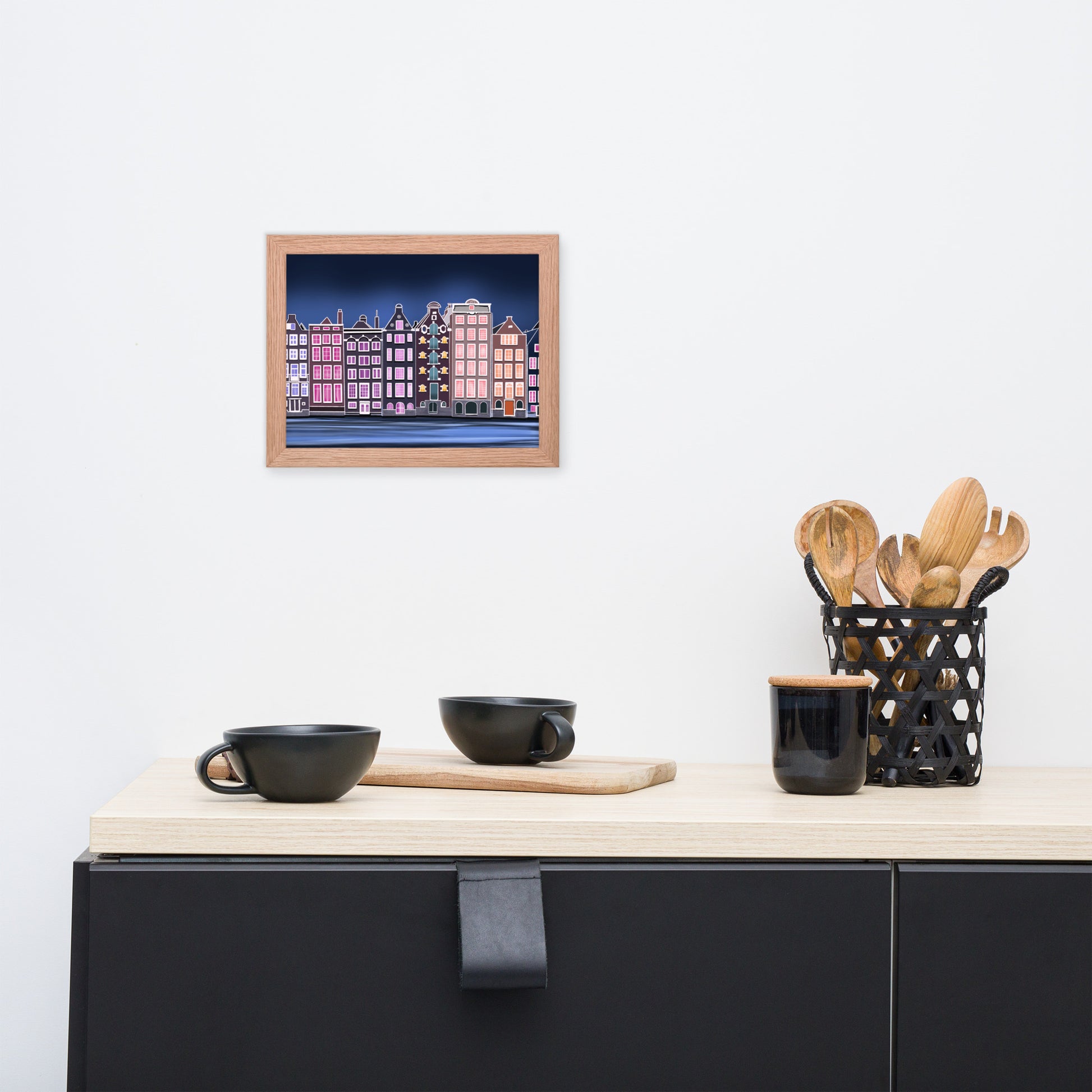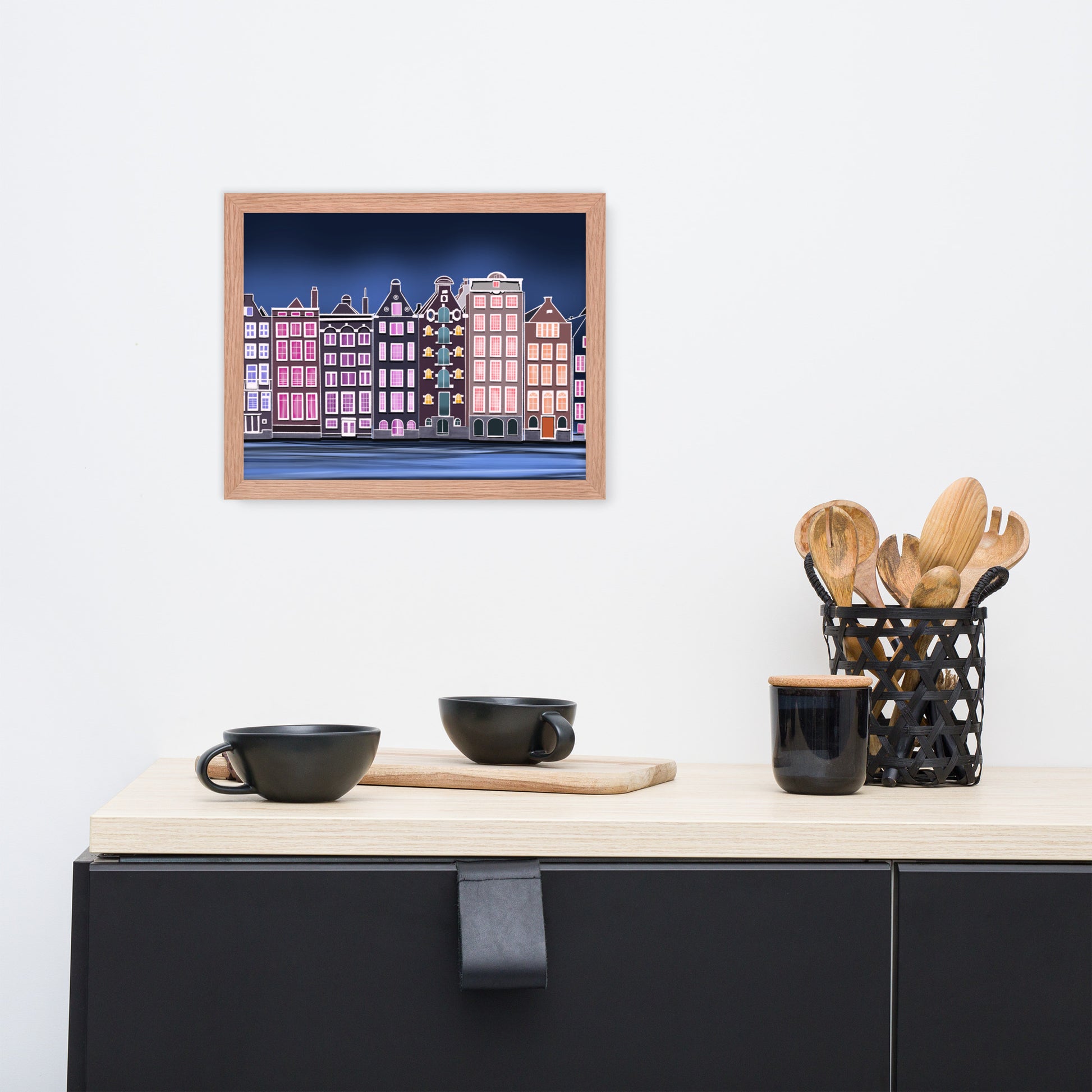 Amsterdam Night Scene - Vibrant Hand-Painted European Architecture Framed Poster