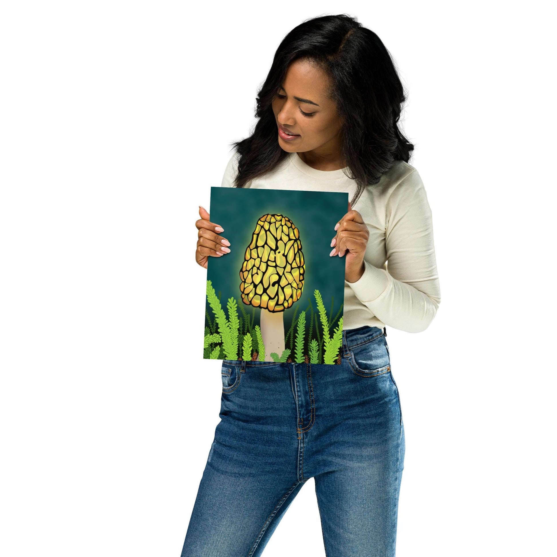 Glowing Morel Mushroom Art Print: Hand-Painted Forest Fungi Illustration
