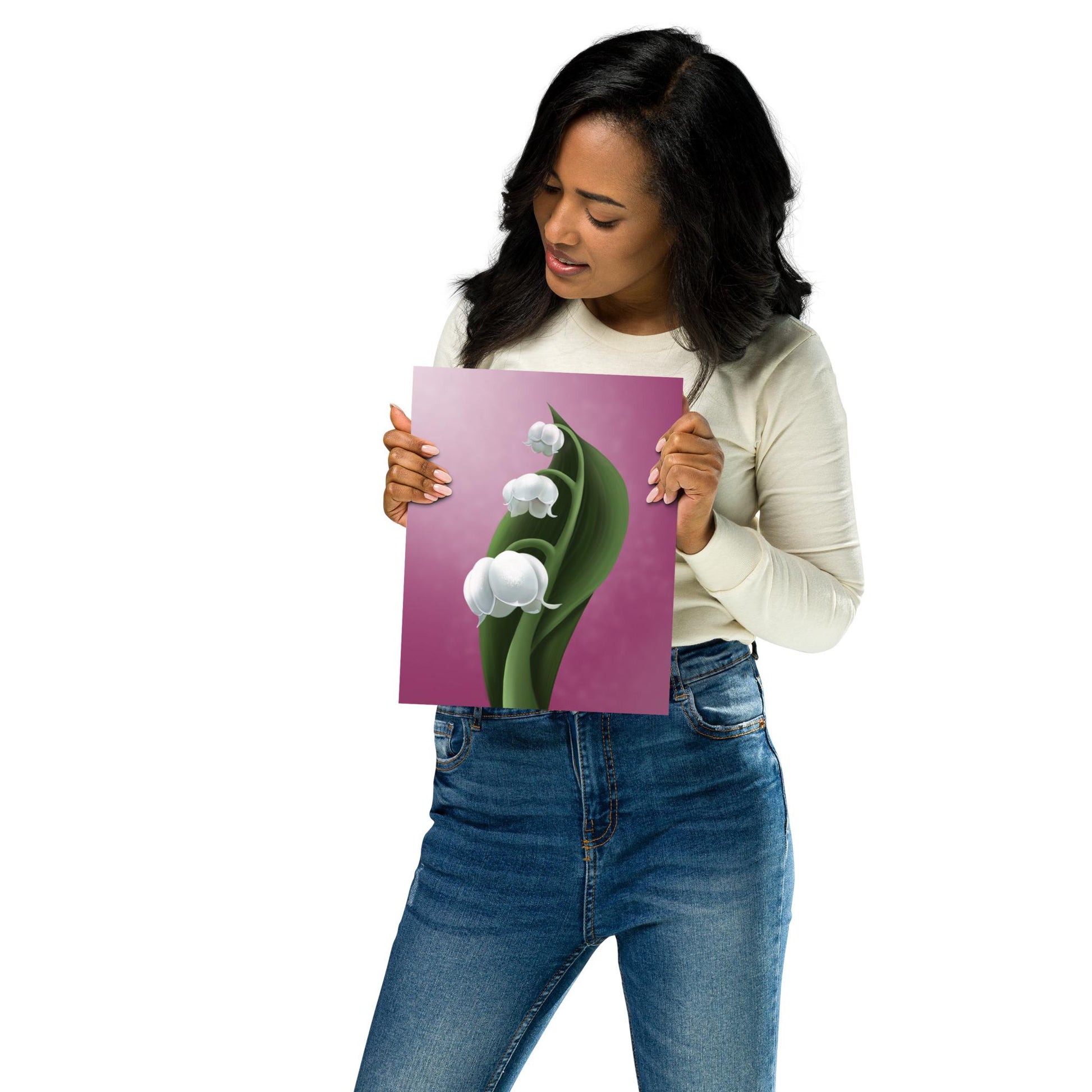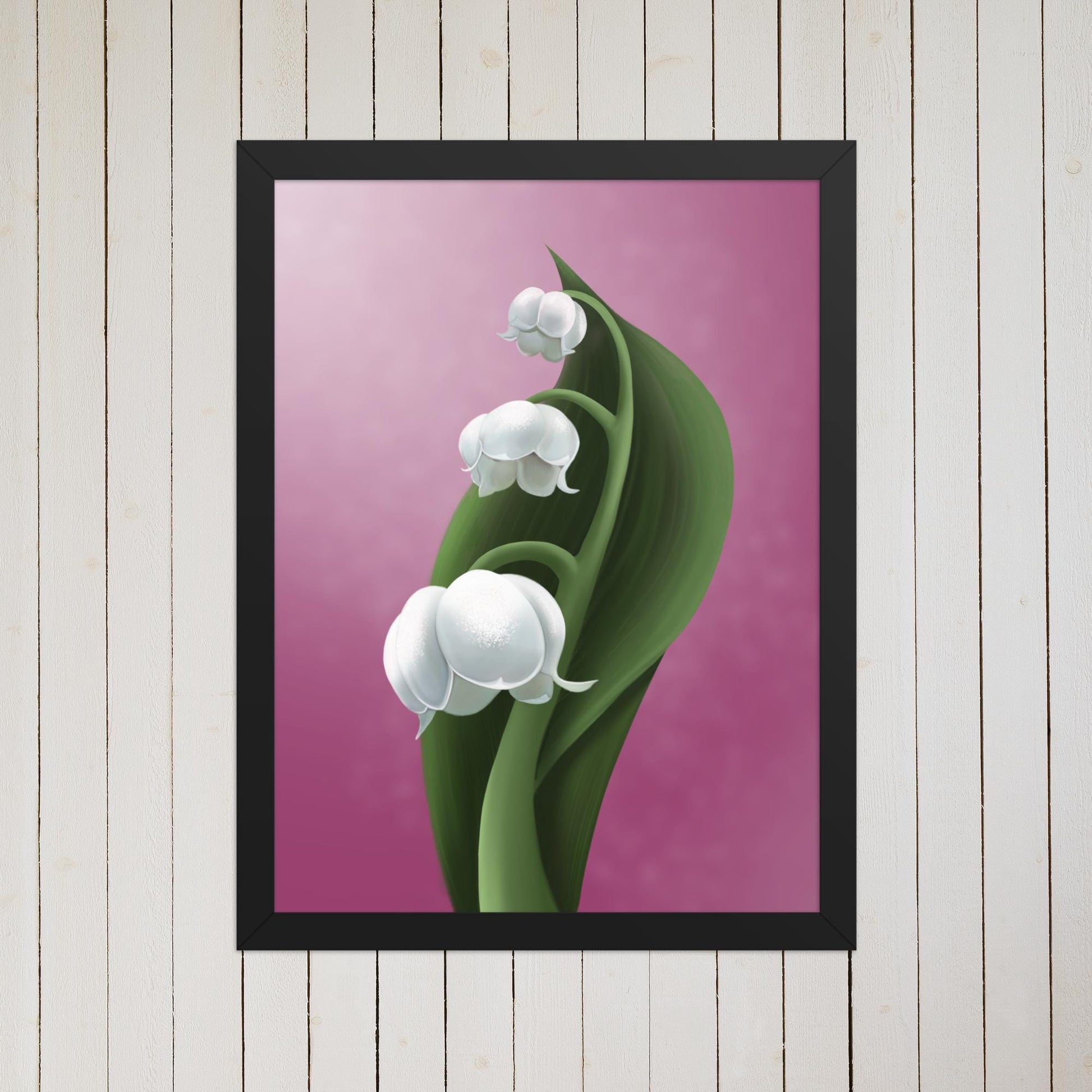 Bring timeless elegance to your space with this hand-painted Lily of the Valley art print. Featuring delicate white bell-shaped blooms nestled in lush green leaves against a soft pink background, this artwork captures the quiet beauty of spring’s most cherished flower.