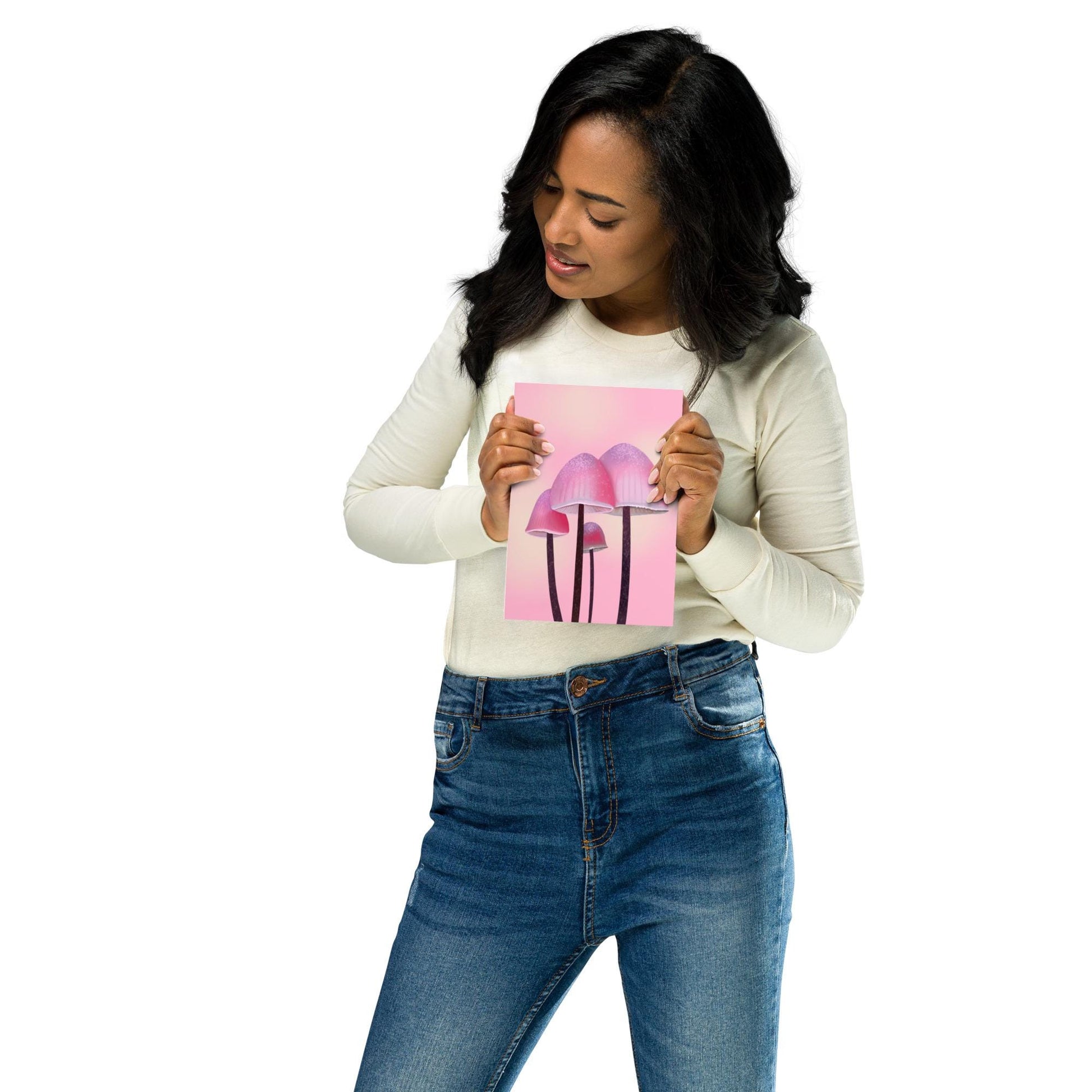 Pink Mushroom Art Print: Whimsical Fungi Botanical Decor