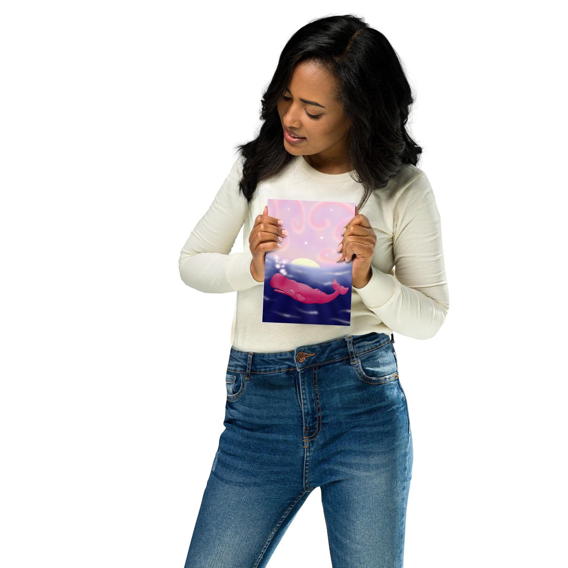 Pink Whale at Sunset – Hand Painted Ocean Art Print